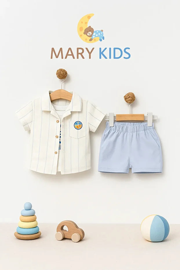 Bebek Erkek Yazlık Takım Kısa Kollu Gömlek Tişört ve Şort 3'lü Kombin