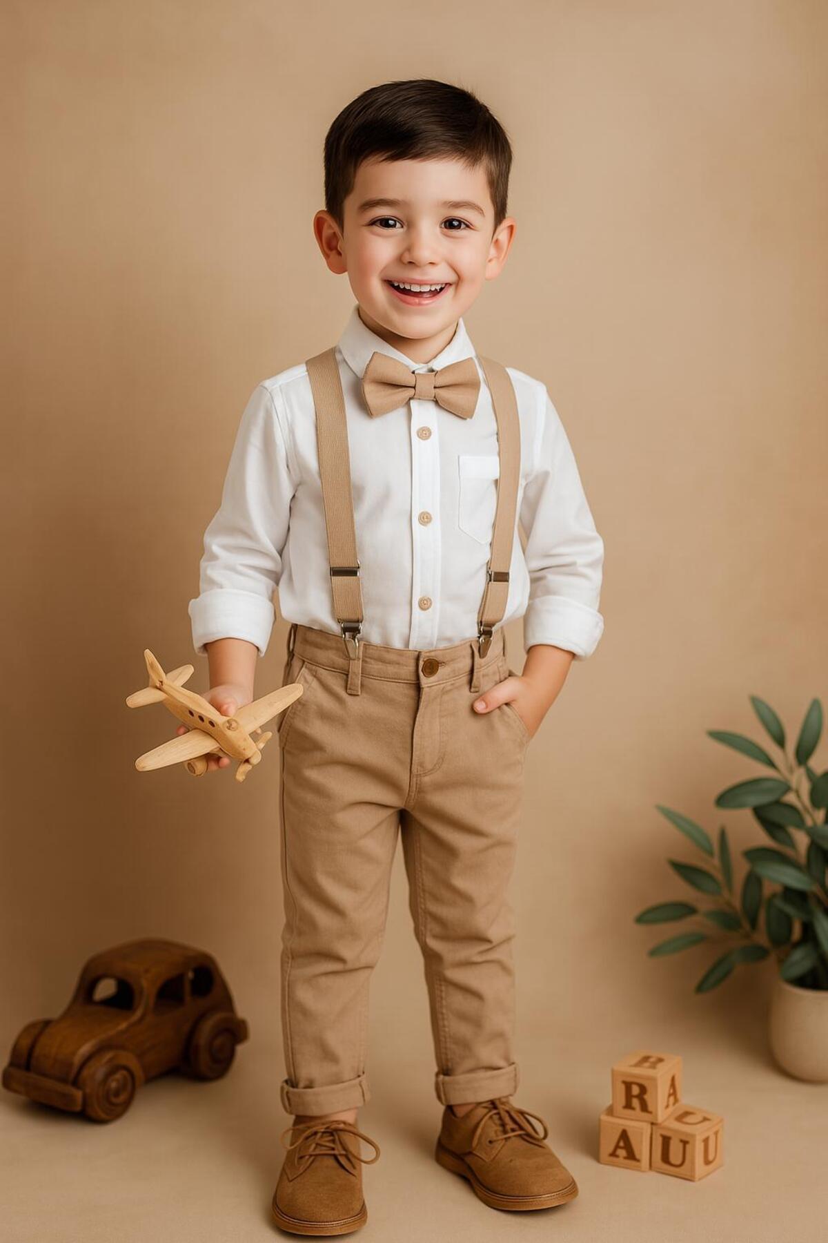 Erkek Çocuk Papyonlu Askılı Gömlek ve Pantolon 2’li Takım (Beyaz Gömlek)