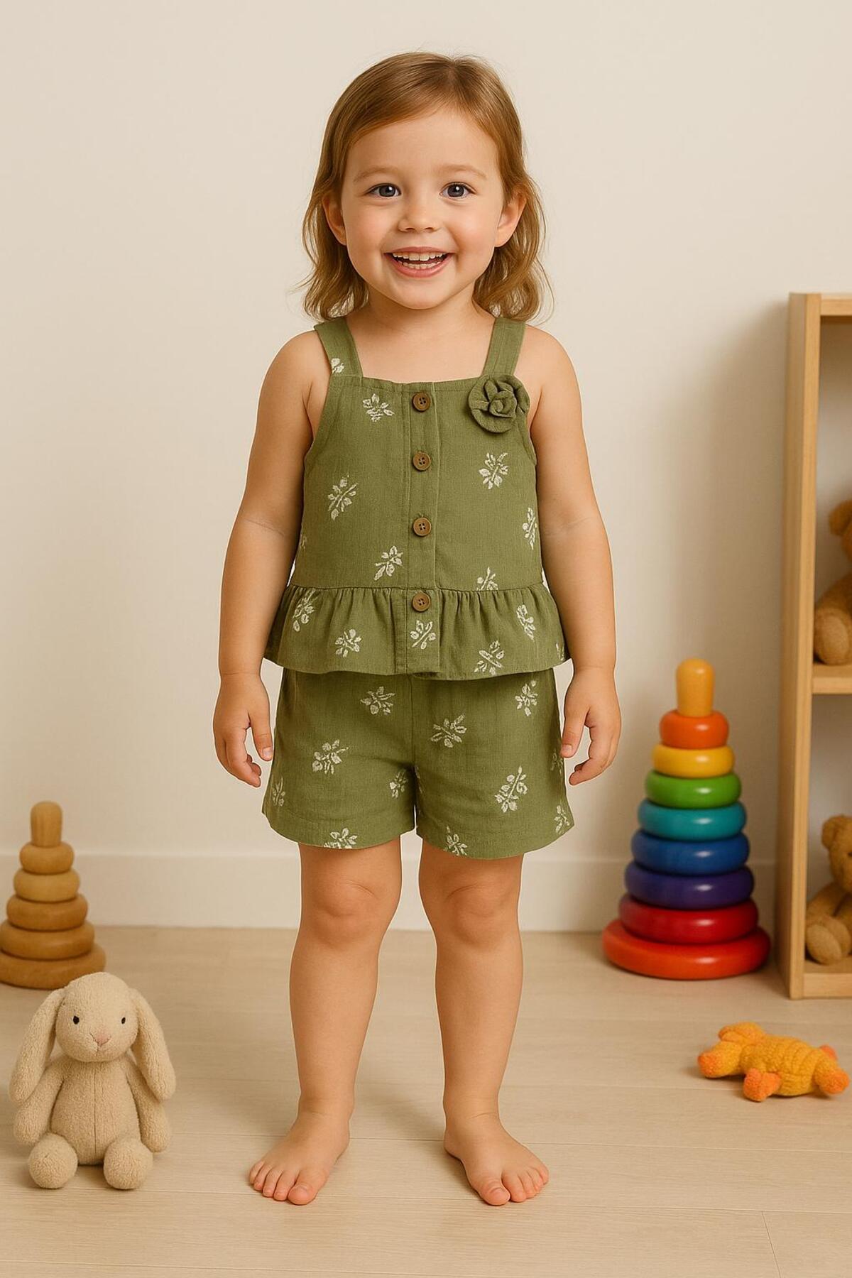 Kız Çocuk Askılı Çiçek Desenli Bluz ve Şort 2’li Yazlık Takım